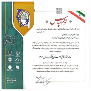 در مراسم تاریخ 10 تیر 1402، در روز ملی صنعت و معدن از واحدهای نمونه صنعتی و معدنی تجلیل شد. در این مراسم که با حضور رئیس جمهور و جمع کثیری از صنعتگران و معدنکاران علاقهمند برگزار شد به واحدهای یاد شده لوح سپاس و تندیس اعطا شد. به مناسبت فرا رسیدن روز صنعت و معدن لوح سپاسی بابت کوشش و اهتمام صنایع تهویه فرم دما و دیگر گروههای صنعتی و معدنی نمونه که در تحقق رشد تولید به عنوان هدف کشور، تلاش نمودهاند به این مراکز اعطا شد.